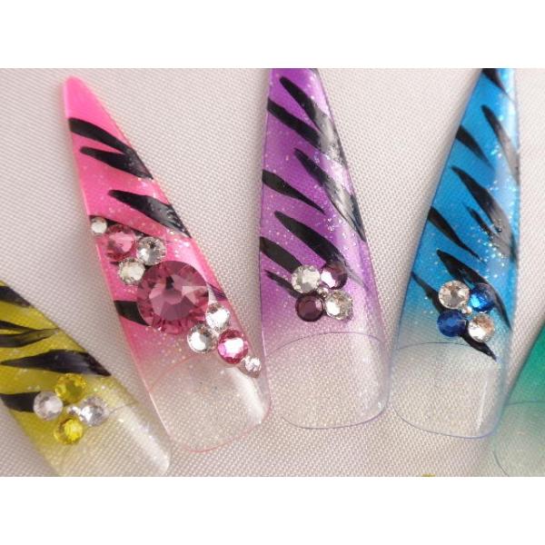 カラフルラメグラデーションゼブラ柄ネイルチップ アニマル柄 ギャルネイル 長い付け爪 ロングネイル L62 Dinaネイル 通販 Yahoo ショッピング